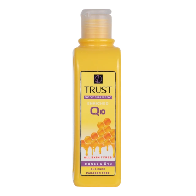 شامپو بدن عسل و Q10 تراست، حاوی عسل است که لایه رویی پوست را آبرسانی میکند و چین و چروکهای پوست را کاهش میدهد. همچنین این شامپو بدن با داشتن کوآنزیم کیوتن به تقویت سد دفاعی پوست کمک میکند و جلوی آسیب پرتوهای UV خورشید را میگیرد. عصاره بابونه موجود در این محصول ضدالتهاب و روشنکننده پوست است.