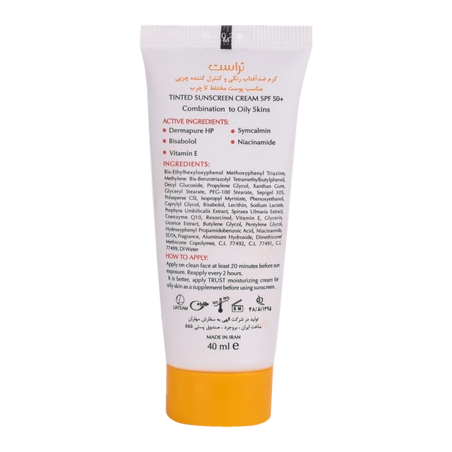 کرمهای ضدآفتاب رنگی تراست با SPF50+ از مرغوبترین و جدیدترین مواد اولیه موثره دارای حداکثر حفاظت دربرابر پرتوهای مضر خورشید ساخته شدهاند؛ این کرم با وجود بهرهمندی از بافتی سبک، دربرابر آسیبهای وارده توسط نور خورشید به خوبی از پوست محافظت و با مهار رادیکالهای آزاد از تخریب سلولهای پوستی جلوگیری میکند. همچنین با مصرف این محصول، بدون بسته شدن منافذ پوستی و ایجاد خلل در تنفس سلولهای پوستی، ضمن کنترل چربی، پوستتان آبرسانی میشود.